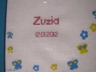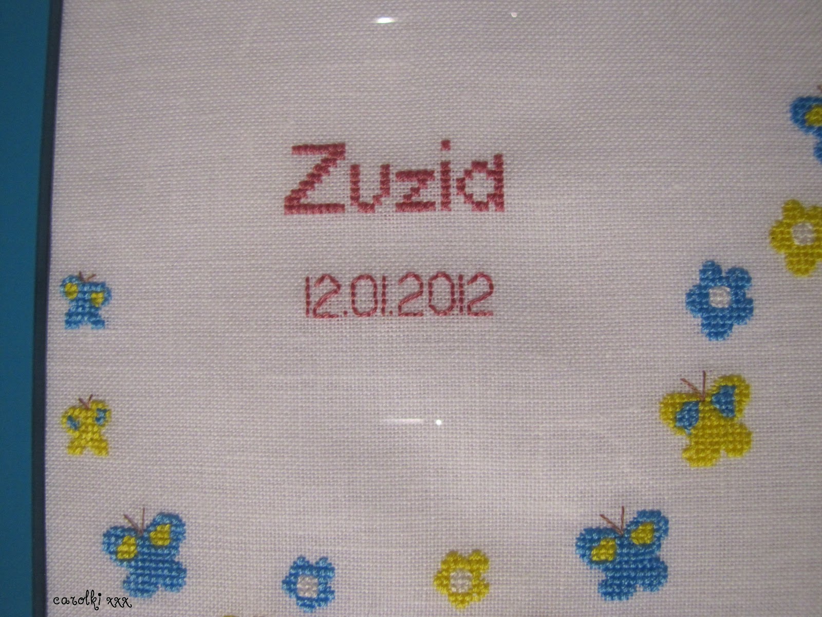 Dziś kolejna metryczka :) Skończona już jakiś czas temu ale mimo, że od prawie dwóch tygodni jestem na zwolnieniu całkowicie brakuje mi czasu. Dopiero od dziś mam nadzieję wszystko się ustabilizuje i będę mogła spokojnie odpoczywać :)